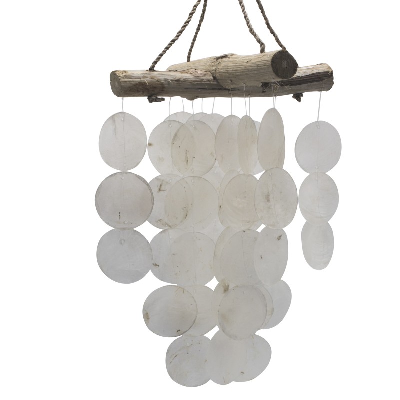 Bring nature inside with these absolutely beautiful Driftwood Chimes. Hand made by small family businesses in Bali, using beach source materials such as driftwood and Capiz glass. Capiz is a well-known shell that creates an enjoyable sound when blowing in the wind and bashing against another.