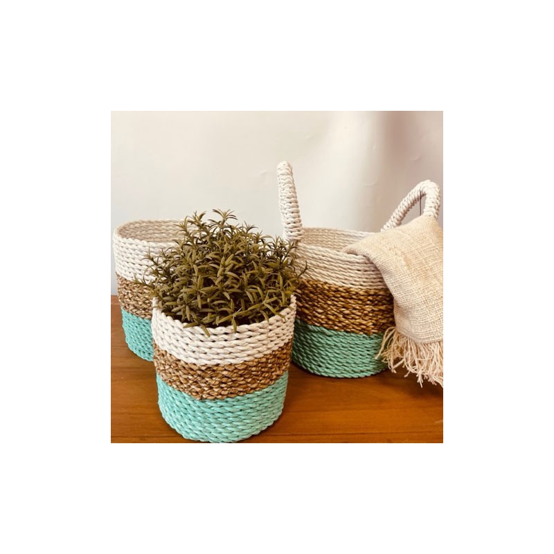 Seagrass Basket Set - Green / Natural / White is perfect for displaying your products, multi-functional baskets are handwoven and add a genuine earthy look to any space.
