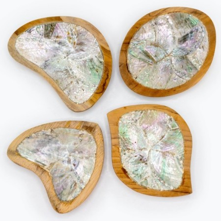 Discover the beauty of nature with unique teak mini bowls, a stunning collection of 4 handcrafted teak mini bowls, each adorned with intricate shell details. These bowls are not just functional pieces but also exquisite works of natural art, perfect for adding a touch of elegance to any space.